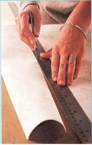 La longitud de tira correcta es la altura del espacio más un exceso de 5 a 10 cm. En caso de dibujos que no necesiten ser alineados, todas las tiras pueden cortarse sucesivamente del rollo. En caso de una alineación recta, todas las tiras son idénticas y para cortarlas los dibujos se ponen uno encima de otro. En caso de dibujos que se deban colocar de forma desplazada, el dibujo se desplaza en cada segunda tira en la mitad del cuadro de dibujo buscando la continuidad del mismo, siendo idéntica cada segunda tira.