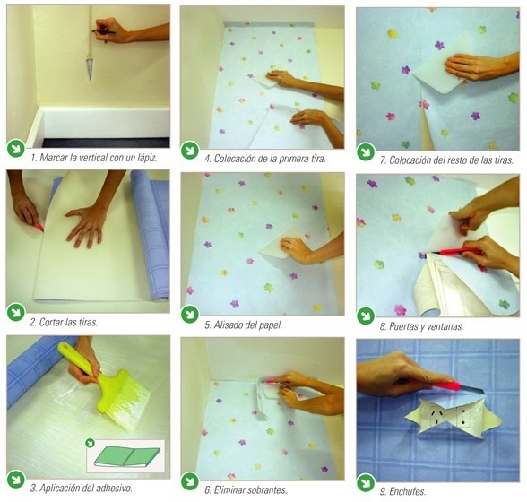 Es importante que el papel tapiz se desenrolle solamente en una dirección.